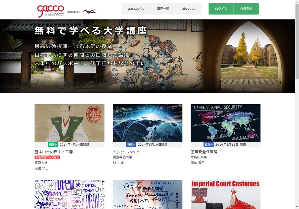 大学教授陣による本格的な講義を、誰でも無料で受けられるウェブサービスです。