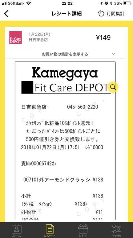 実際にFit careで使ってみました。レジ係の人は慣れた様子でバーコードを読み込んでくれてレシートの手渡しは省いてくれました。何も特戸惑うようなはありませんでした。