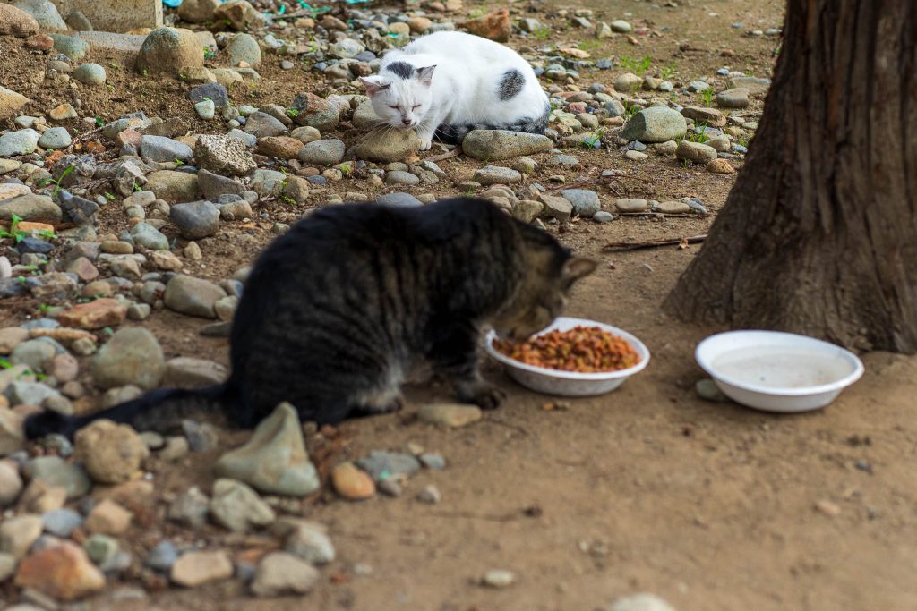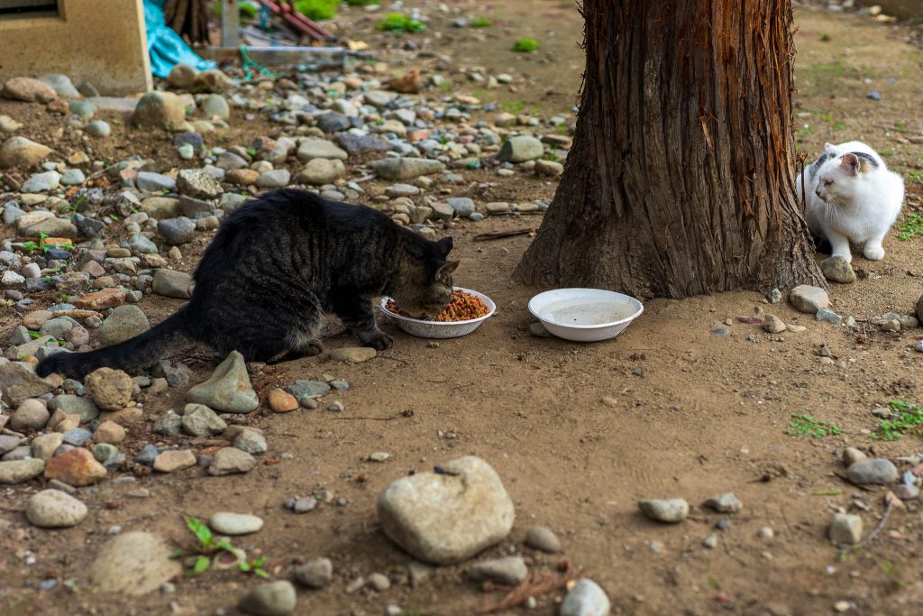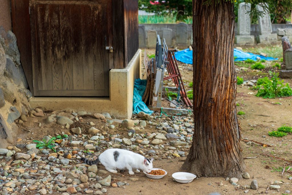 年によって猫が代替わりしたり、全くいなかったりします。今回はキジトラと白い猫が2匹いました。