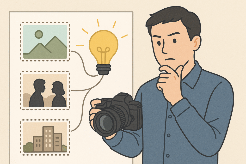 写真撮影を考えるとき、「ぼんやりとしたテーマはあるものの、具体的な撮影場所や撮影方法が決まらない」ということがあります。このような場合には、ChatGPTを先生役として利用し、適切な質問を投げかけることで、自分自身のテーマやロケ地選び、撮影スタイルを具体化できます。以下では、撮影場所の選定、テーマの深掘り、撮影方向性やスタイルを明確化するためのプロンプト作成法と、さらに深掘りを促す追加プロンプトの例を紹介します。